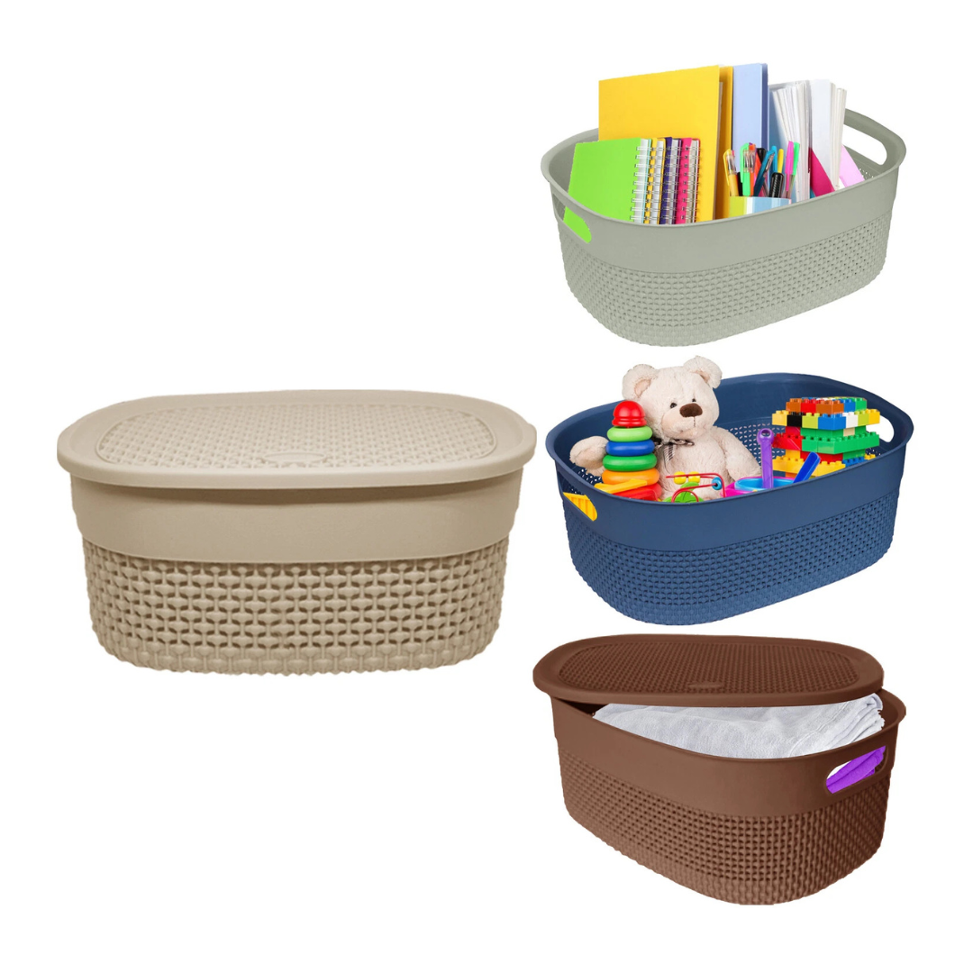 Juego de 4 cestas de almacenamiento con estantes pequeños/grandes con tapa y asa para artículos de tocador, juguetes y oficina en casa.